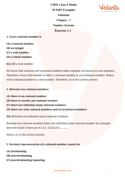 Ncert Exemplar For Class 9 Maths Chapter 1 Mathongo