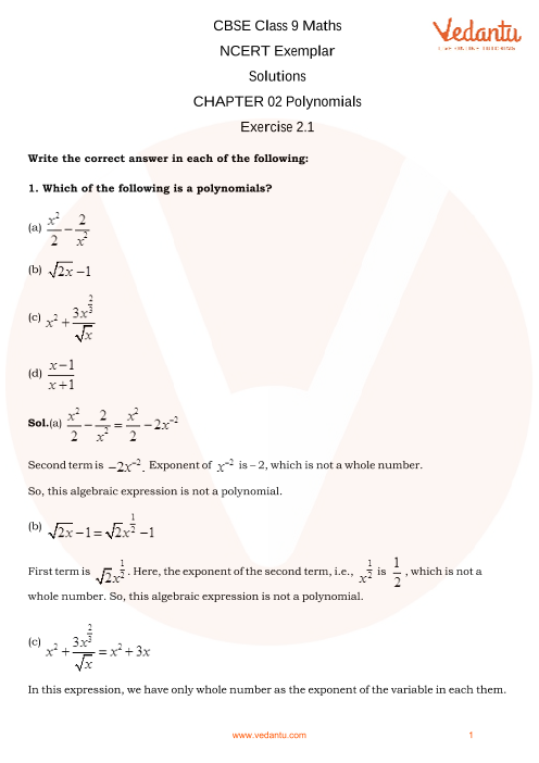 Ncert Exemplar For Class 9 Maths Chapter 2 Polynomials Book Solutions