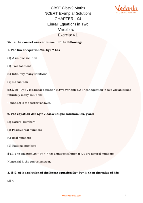 Ncert Exemplar For Class 9 Maths Chapter 4 Linear Equations In Two Variables Book Solutions