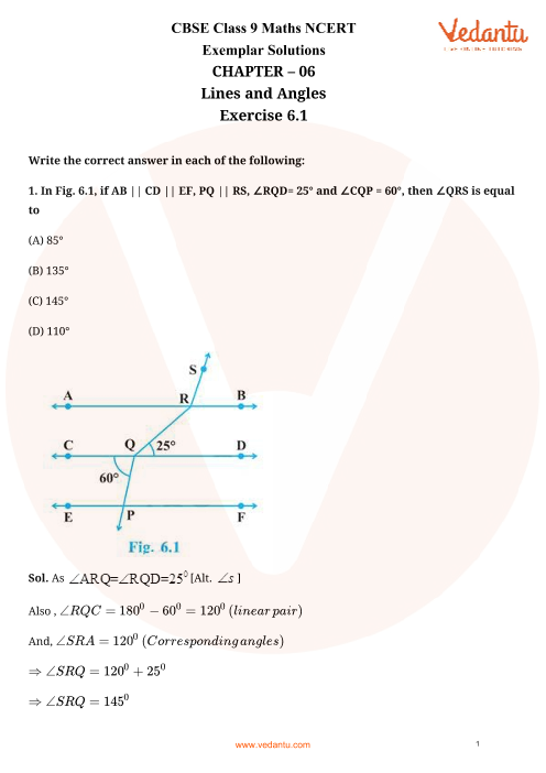 Ncert Exemplar For Class 9 Maths Chapter 6 Lines And Angles Book Solutions