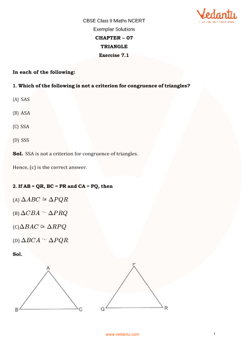Ncert Exemplar Class 9 Mathematics Chapter 7 Triangles Download Free Pdf